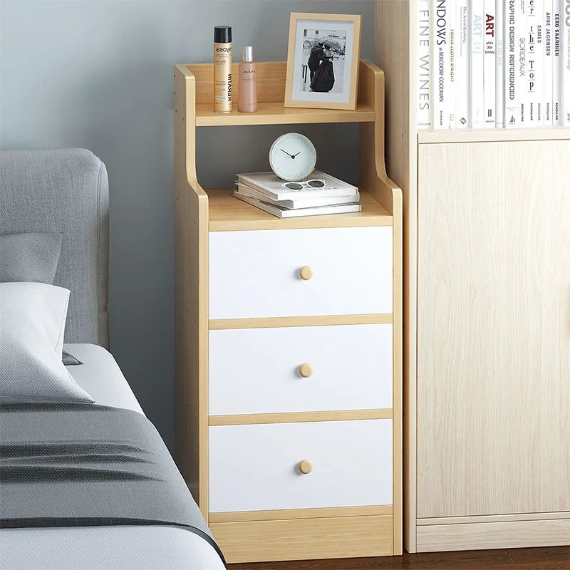 超スリムなベッドサイド収納キャビネット - 現代シンプルでミニマルなデザイン、小型ベッド横シンプル収納ユニット、ナチュラルウッドカラーでお部屋をすっきり整理整頓!