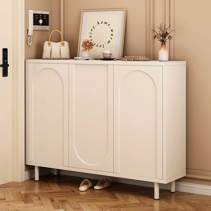 風格あるクリーム風シューズキャビネット:家庭用の玄関に最適な防塵・間仕切りキャビネット、新作フレンチスタイルのエントランス収納!シンプルで使いやすいデザインが魅力の玄関用ラック。