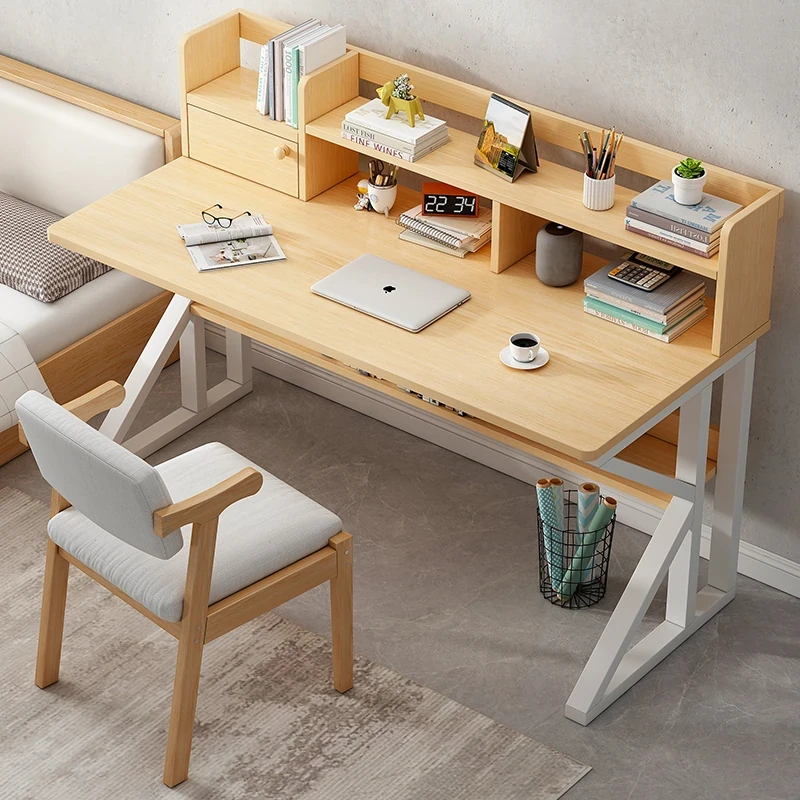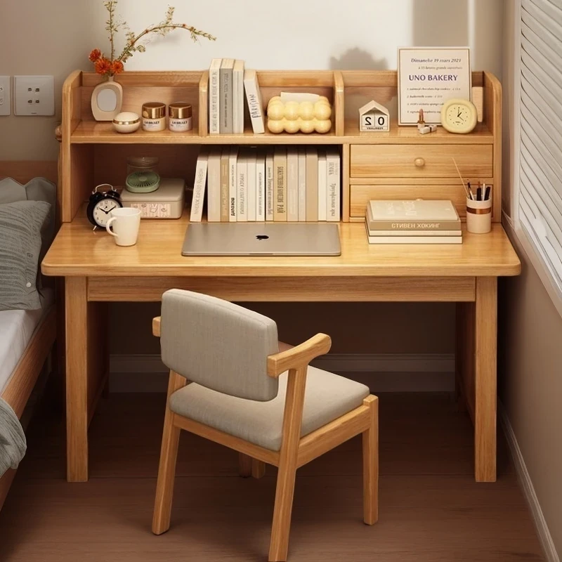 自然木のデスク&シェルフ一体型 – シンプルでスタイリッシュな学生・家庭用デスク。快適な学習・作業スペースを提供し、リラックスした雰囲気で効率アップ!おしゃれな寝室やオフィスにもぴったりです。