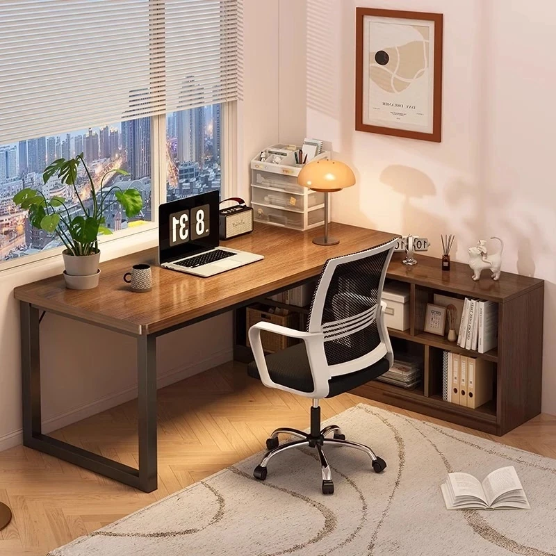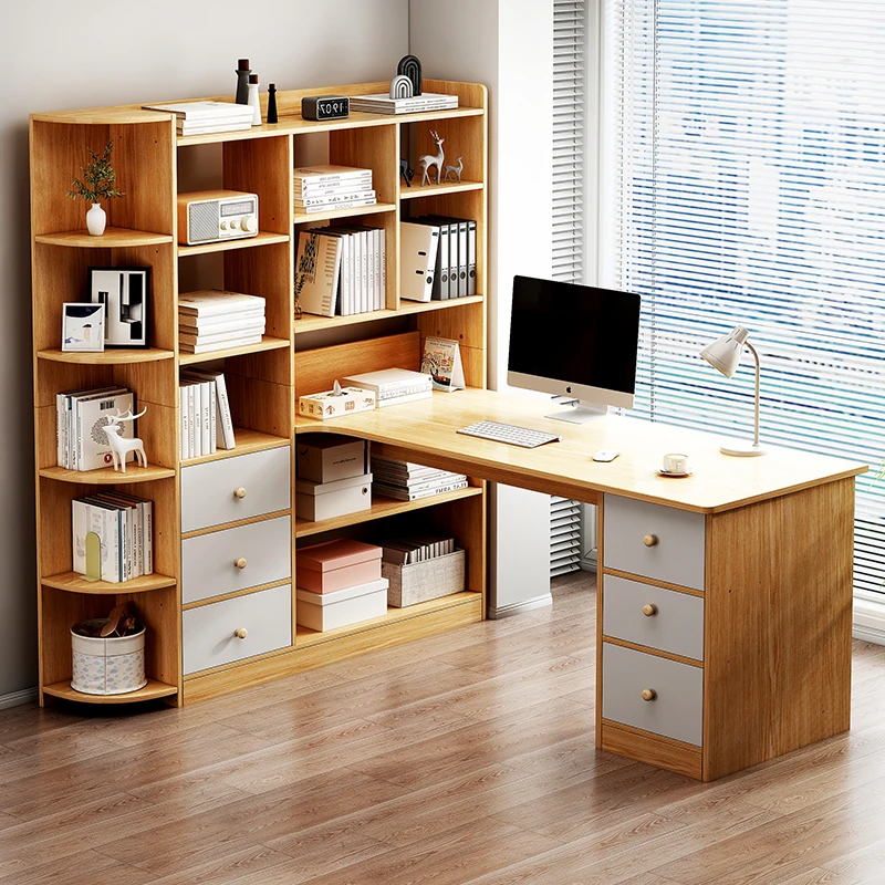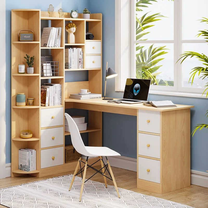 多機能 L字型コンピューターデスク|角型デスク & 書棚一体型|学生や家庭に最適|スタイリッシュで省スペース|オフィスや寝室にもぴったり【快適な作業空間を提供】