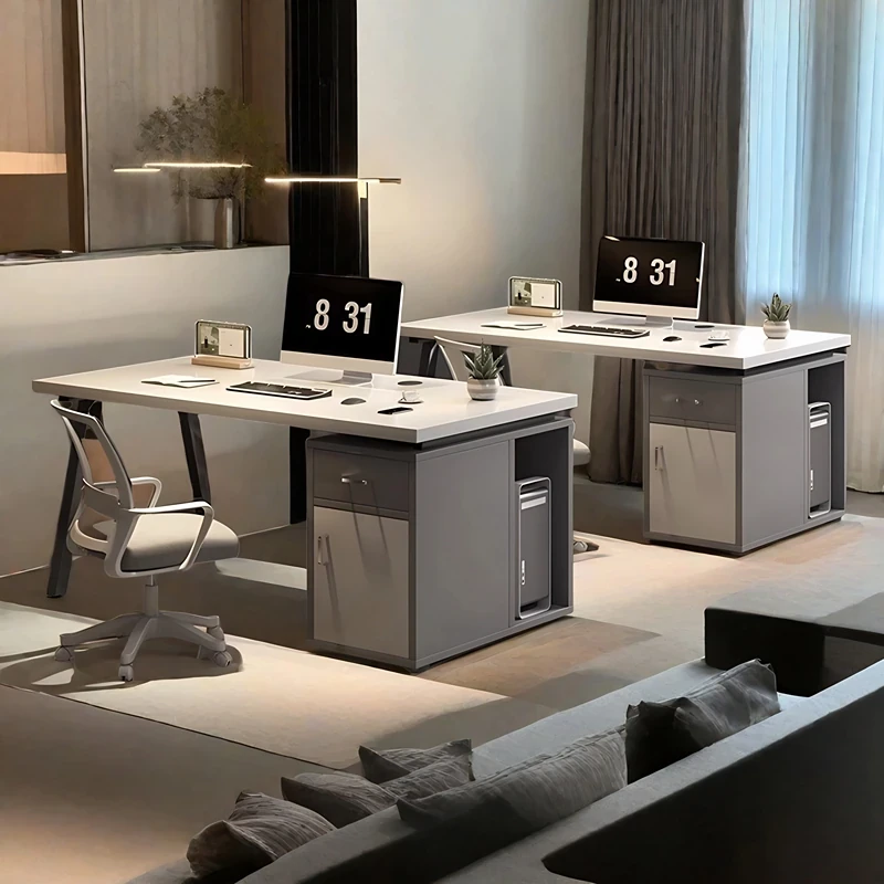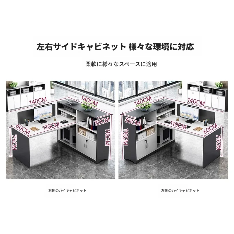 シンプルでスタイリッシュなコンビネーション社員デスク - 自宅での快適なオフィス環境を実現!収納力抜群、作業効率アップの理想的なデザインです。
