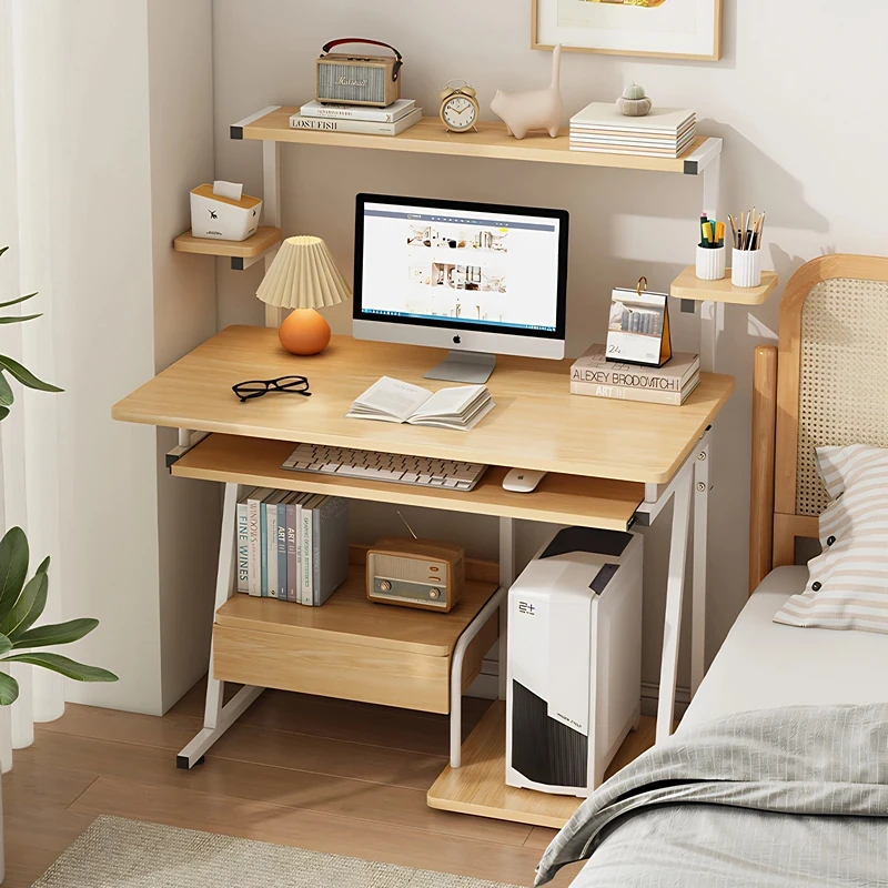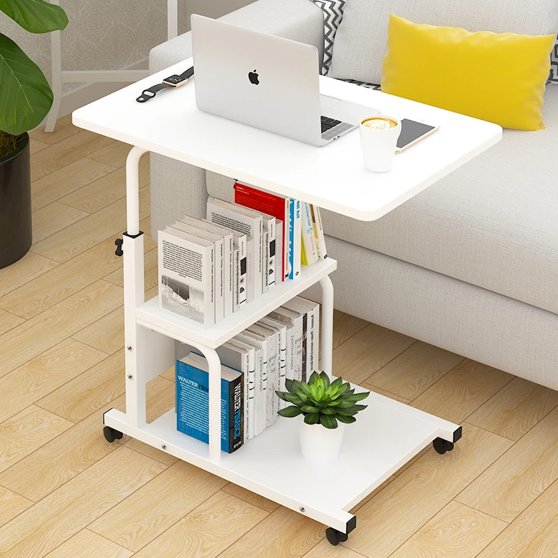 ベッドサイド移動可能!多層スタイリッシュPCデスク─ シンプルでおしゃれな収納付き、家庭学習に最適な便利デスク