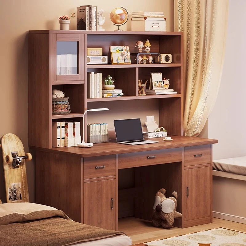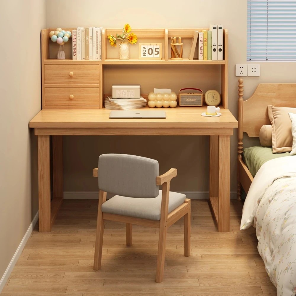 天然木材质感!多機能一体型デスク&本棚:学生向け家庭用学習机、シンプルデザインで書斎や寝室にぴったりのパソコンデスク