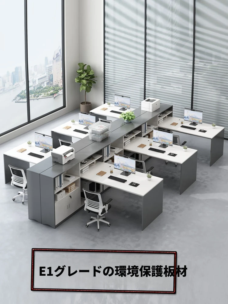 シンプルな従業員用デスク・パソコンデスクの組み合わせオフィスデスク - スタイリッシュで機能的な作業スペースを実現、ビジネスの生産性を向上させます!