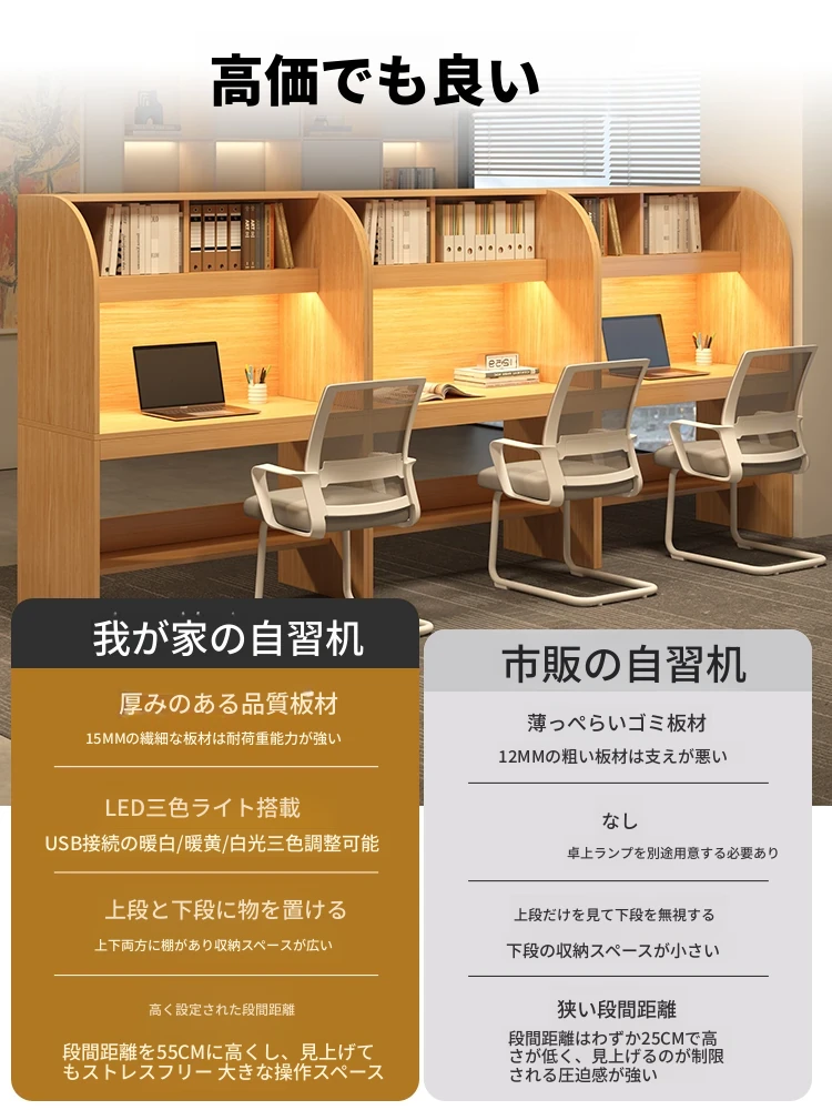 子供用デスク&本棚一体型!シンプルでスタイリッシュ、女の子の寝室にぴったり。高校生のお勉強をサポートするデスク&チェアセットで、集中力アップ間違いなし!