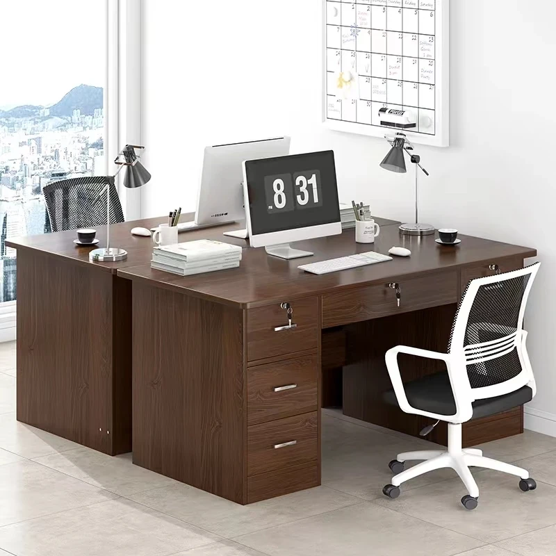 シンプルモダンなオフィスデスク - 鍵付きで安全、快適な作業空間を提供する従業員用コンピュータデスク!経営者やオフィススタッフに最適なデザイン。ビジネスをサポートする実用性抜群のデスクです。