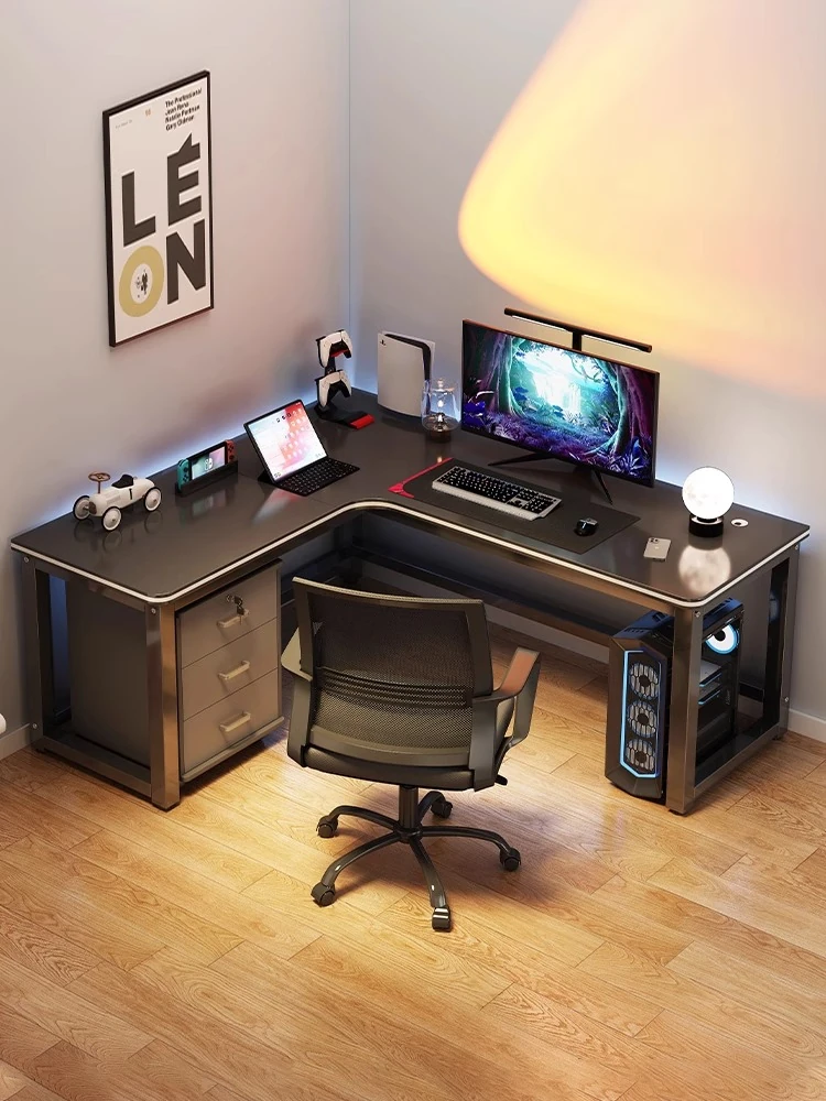 ゲーミングにもぴったり!L字型デザインのコーナーデスク - 自宅用オフィス、勉強や二人作業に最適な万能PCテーブル