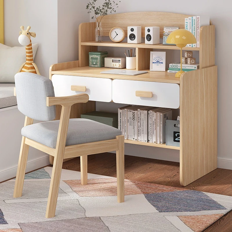 天然木製の子供用デスク&本棚セット - 小学生のための学習デスク!おしゃれで実用的なデザイン、快適な学習空間を提供します。自宅での勉強や遊びに最適な、便利なコンピューターデスク!