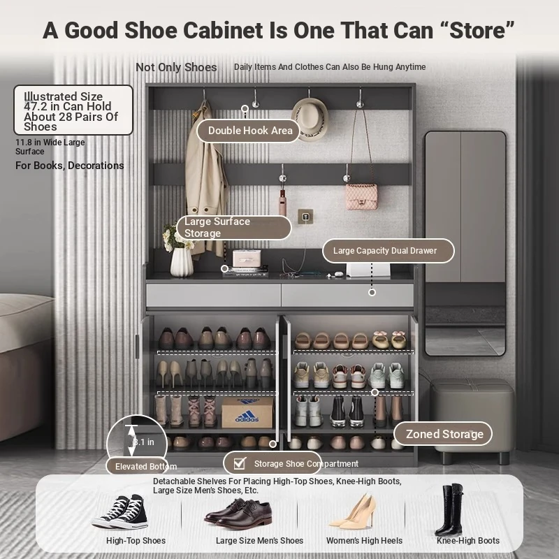 2024 New Stylish Shoe Cabinet - Space-Saving Entryway Storage Solution, Wall-Mounted Indoor Organizer, Perfect for Home, Hallway, and Balcony Use
