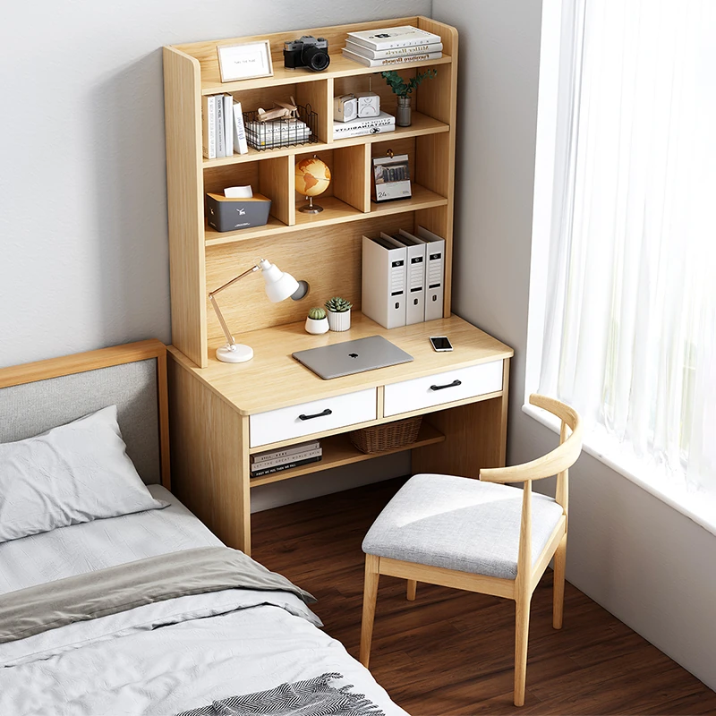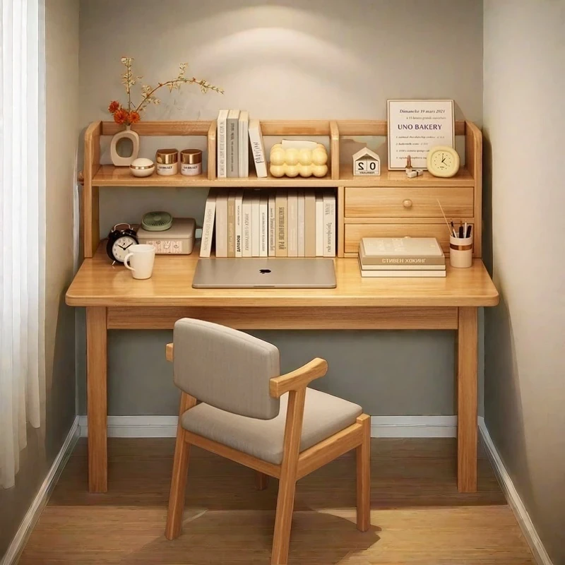 Solid Wood Desk and Bookshelf Combo - Simple Student Computer Table for Home Use, Ideal for Bedroom and Office, Perfect Study and Writing Surface