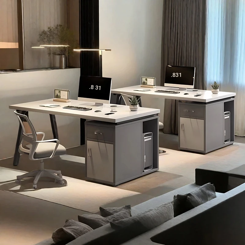 Modern Minimalist Office Desk Set – Stylish Staff Workstation with Dual Computer Desks and Chairs for Home and Office Use
