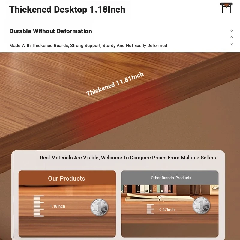 Solid Wood Long Desk - Minimalist Modern Home Office Workspace for Reading and Studying, Ideal for Living Room Use, Sleek Design, Perfect for Productivity and Style!