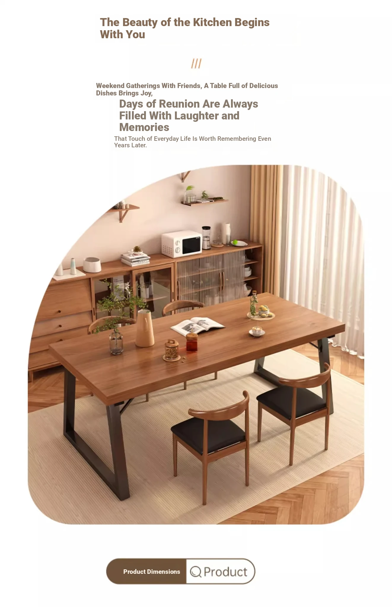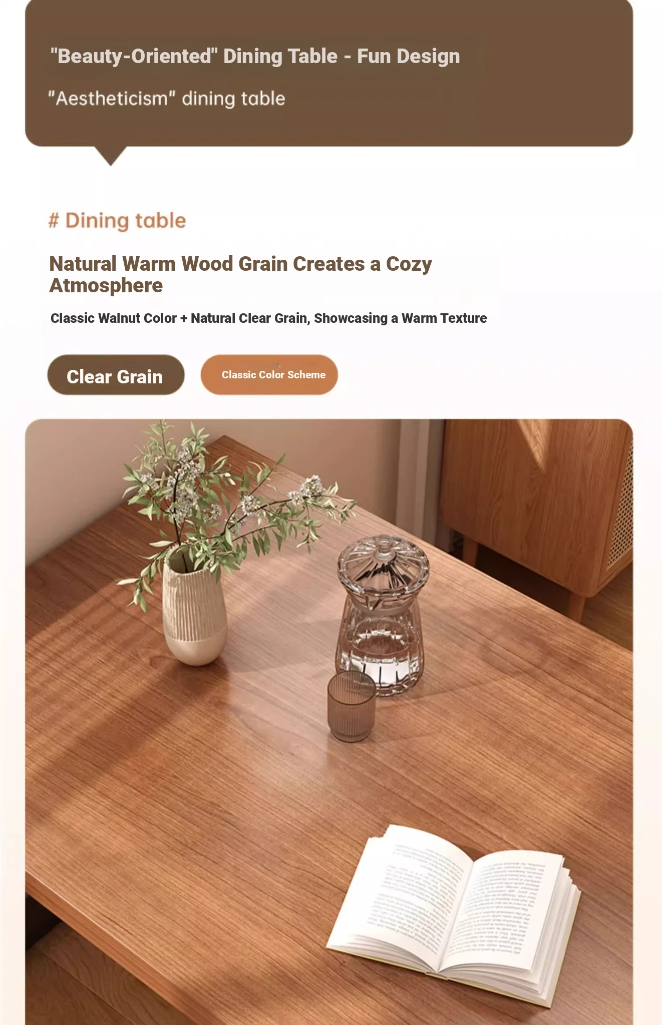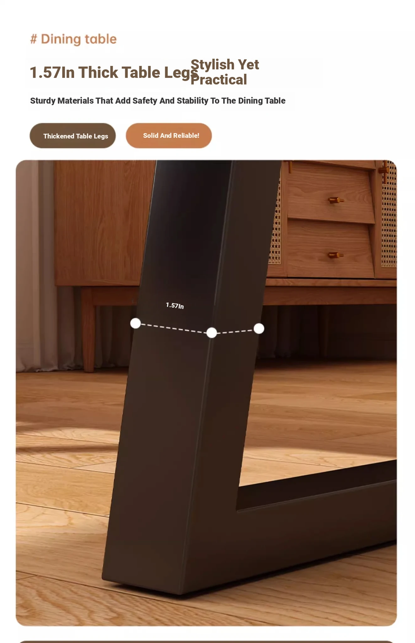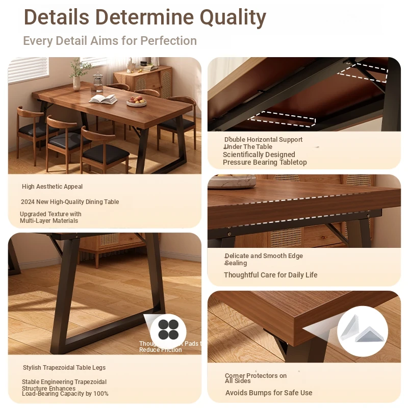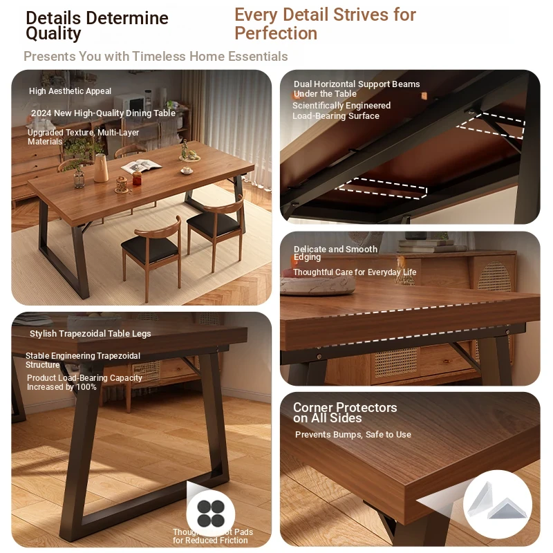 [One table and four chairs★Solid wood chair] 62.99in*23.62in*29.53in | Walnut color