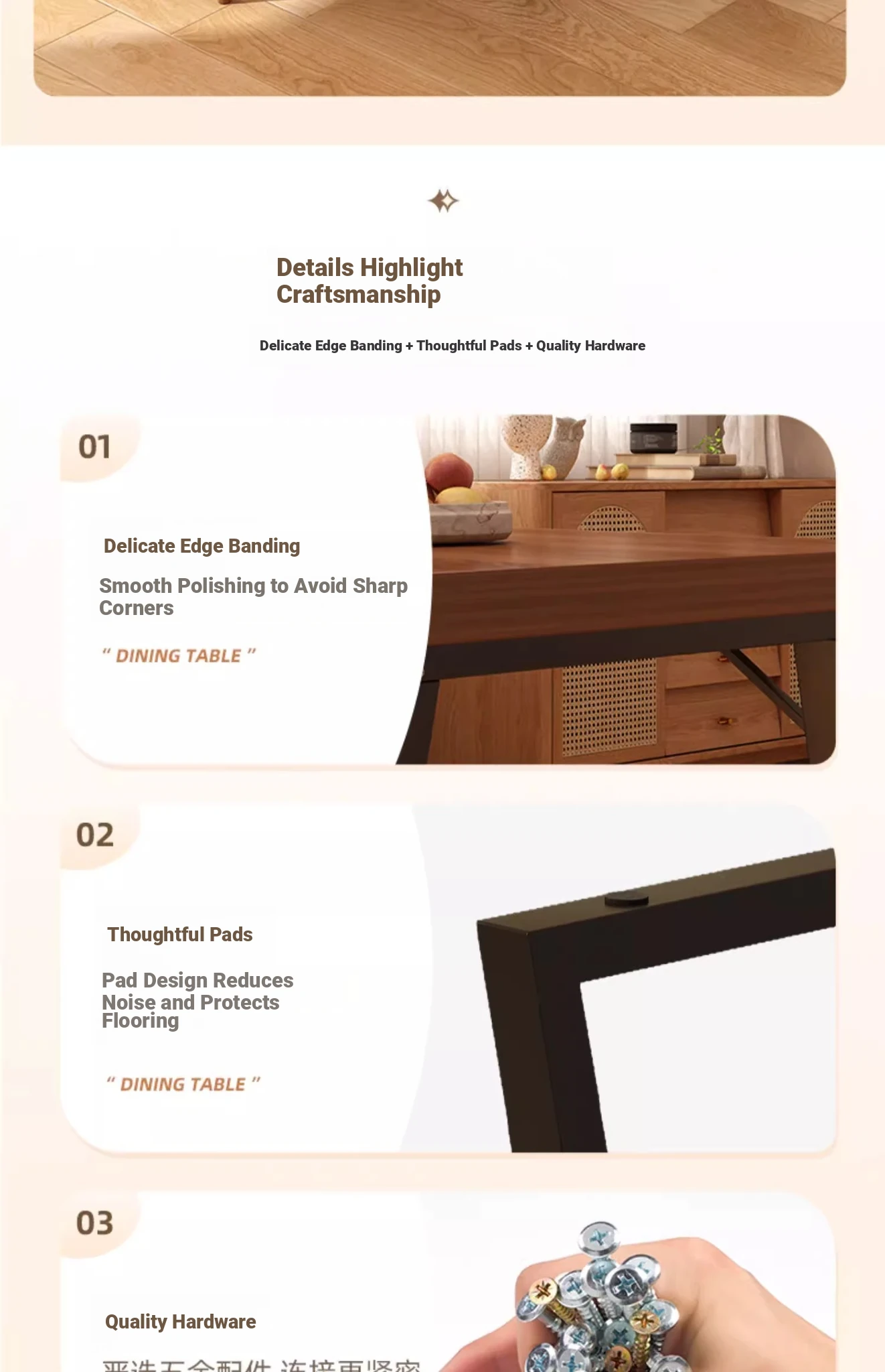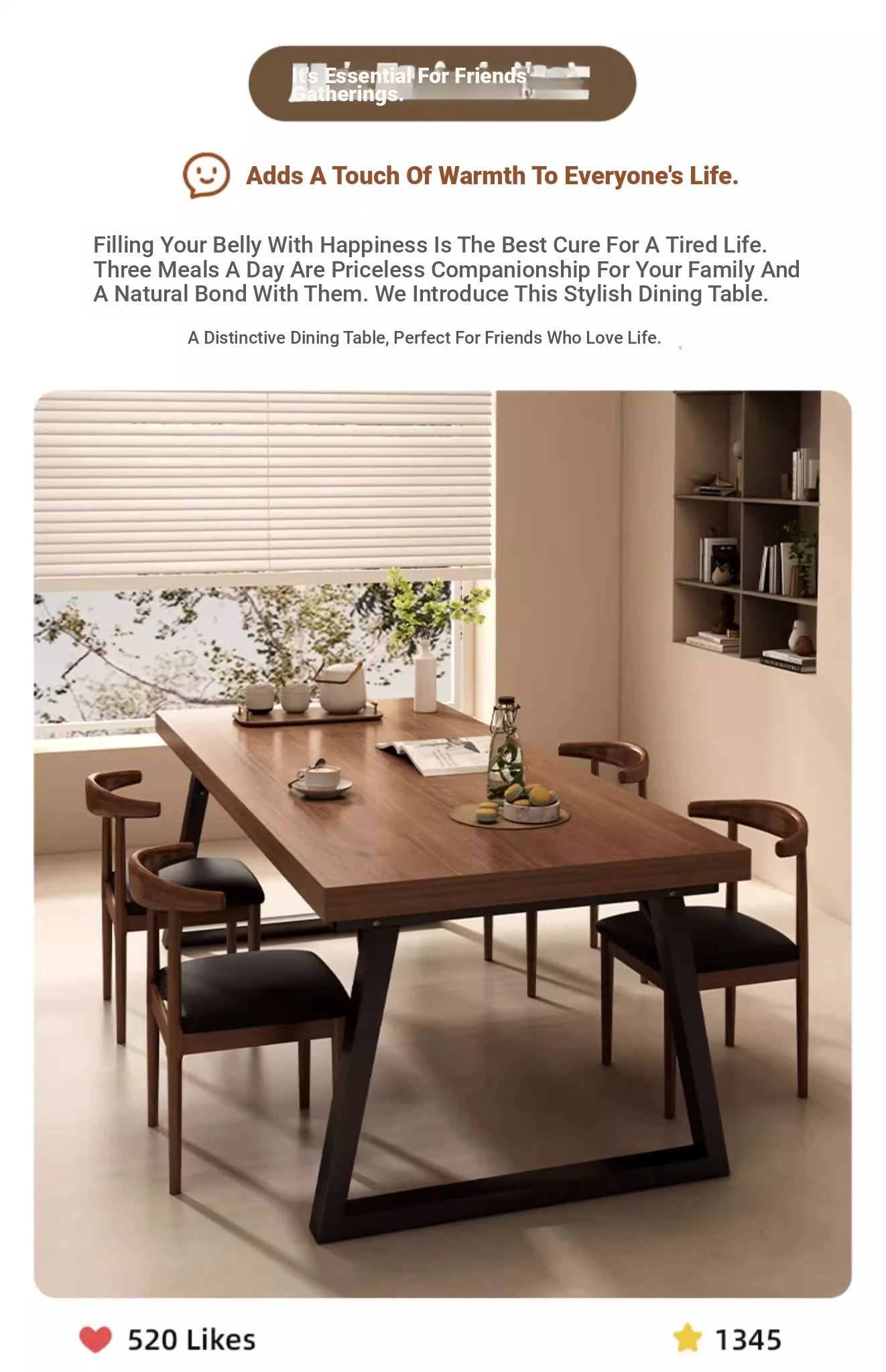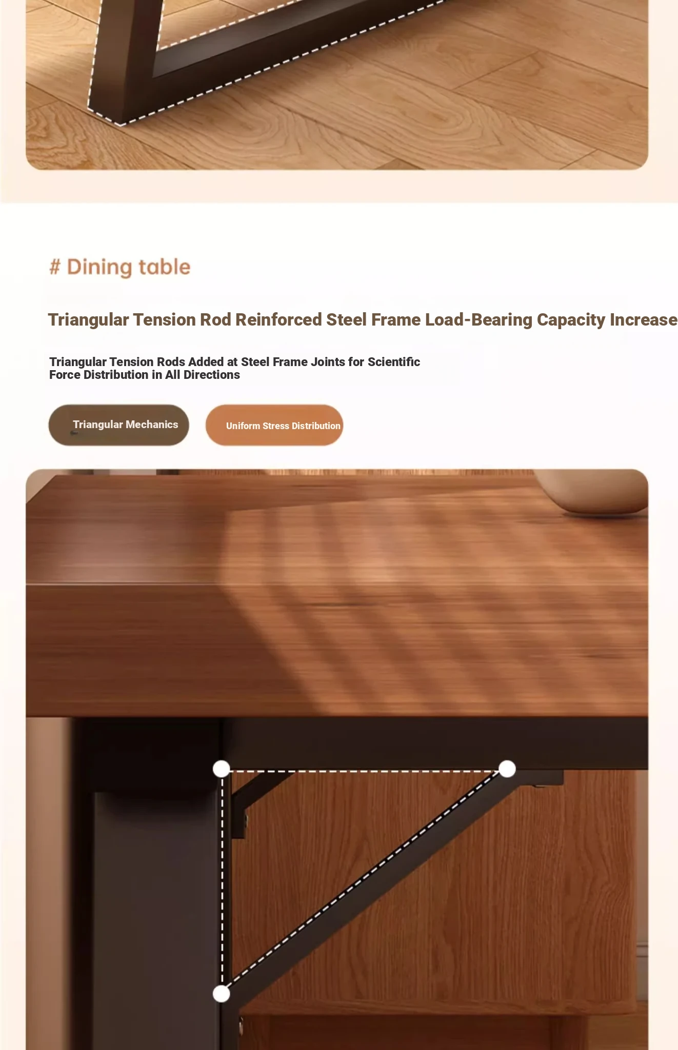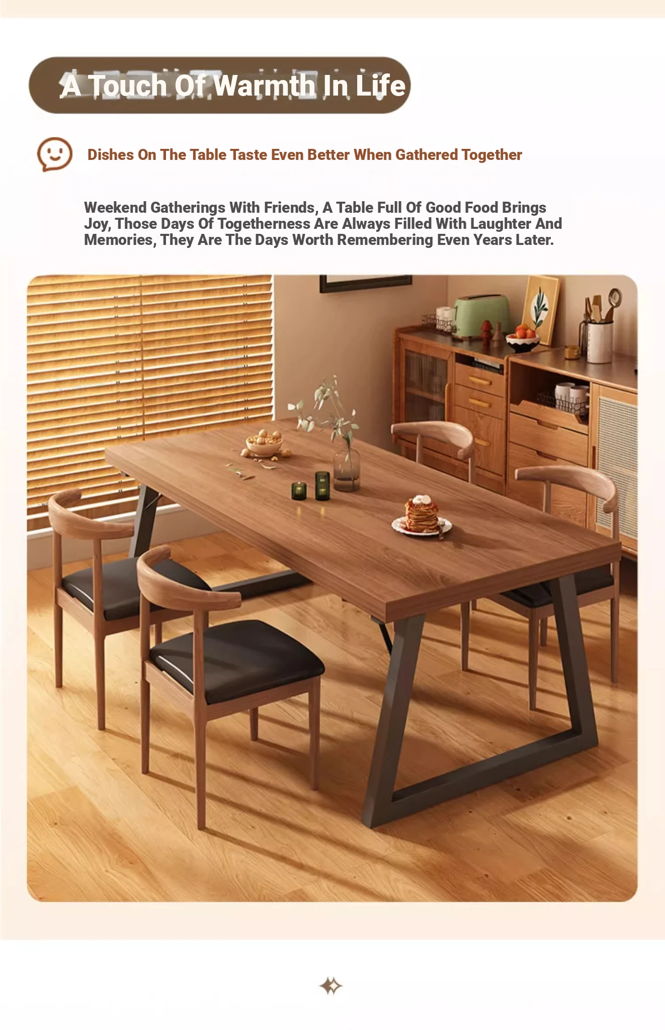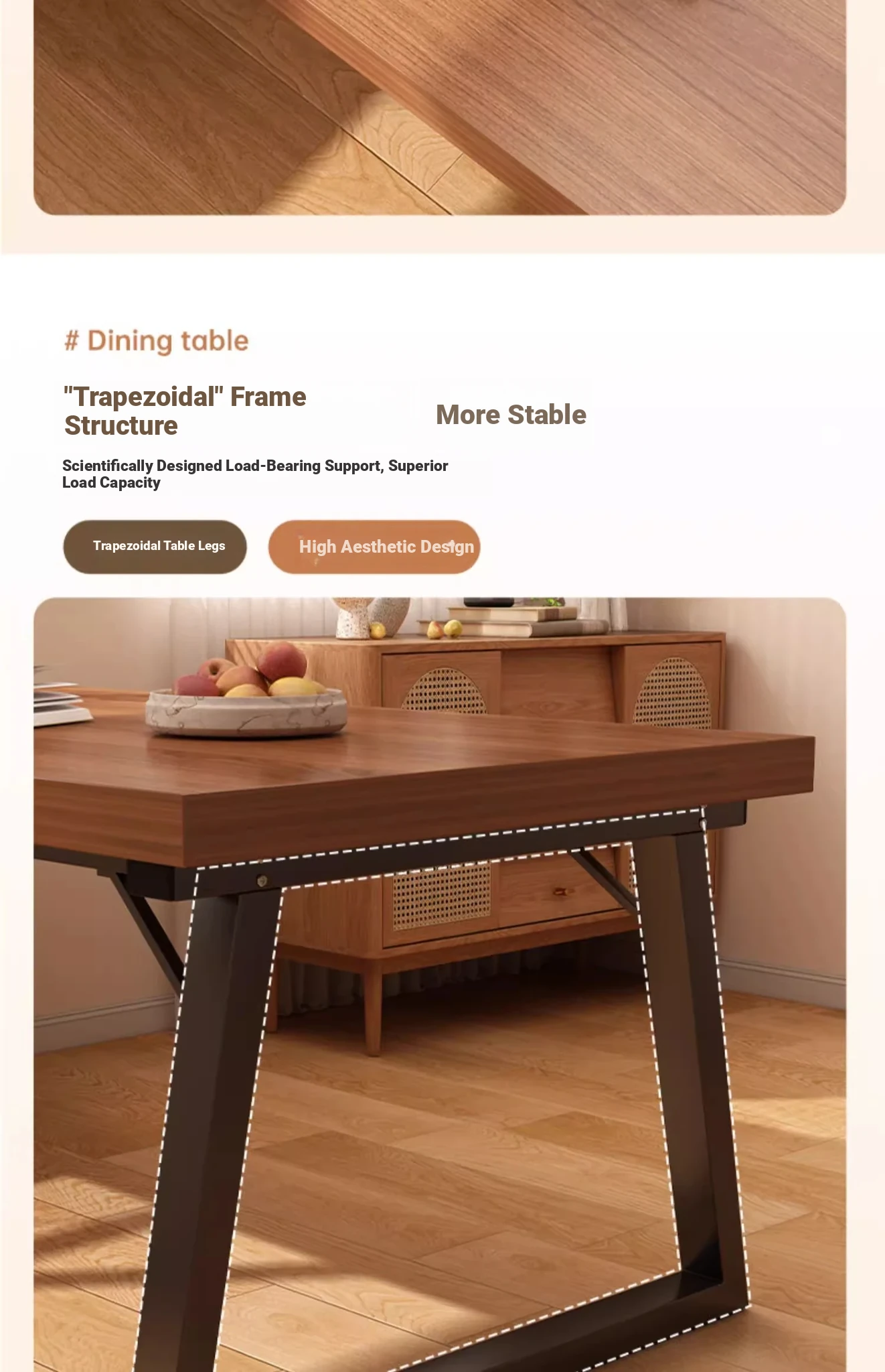 [One table and four chairs★Solid wood chair] 62.99in*23.62in*29.53in | Walnut color
