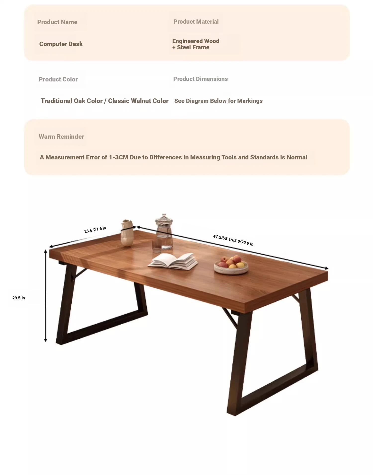 [Main picture single table⭐1.18in thickened desktop] 70.87in*27.56in*29.53in | Walnut color