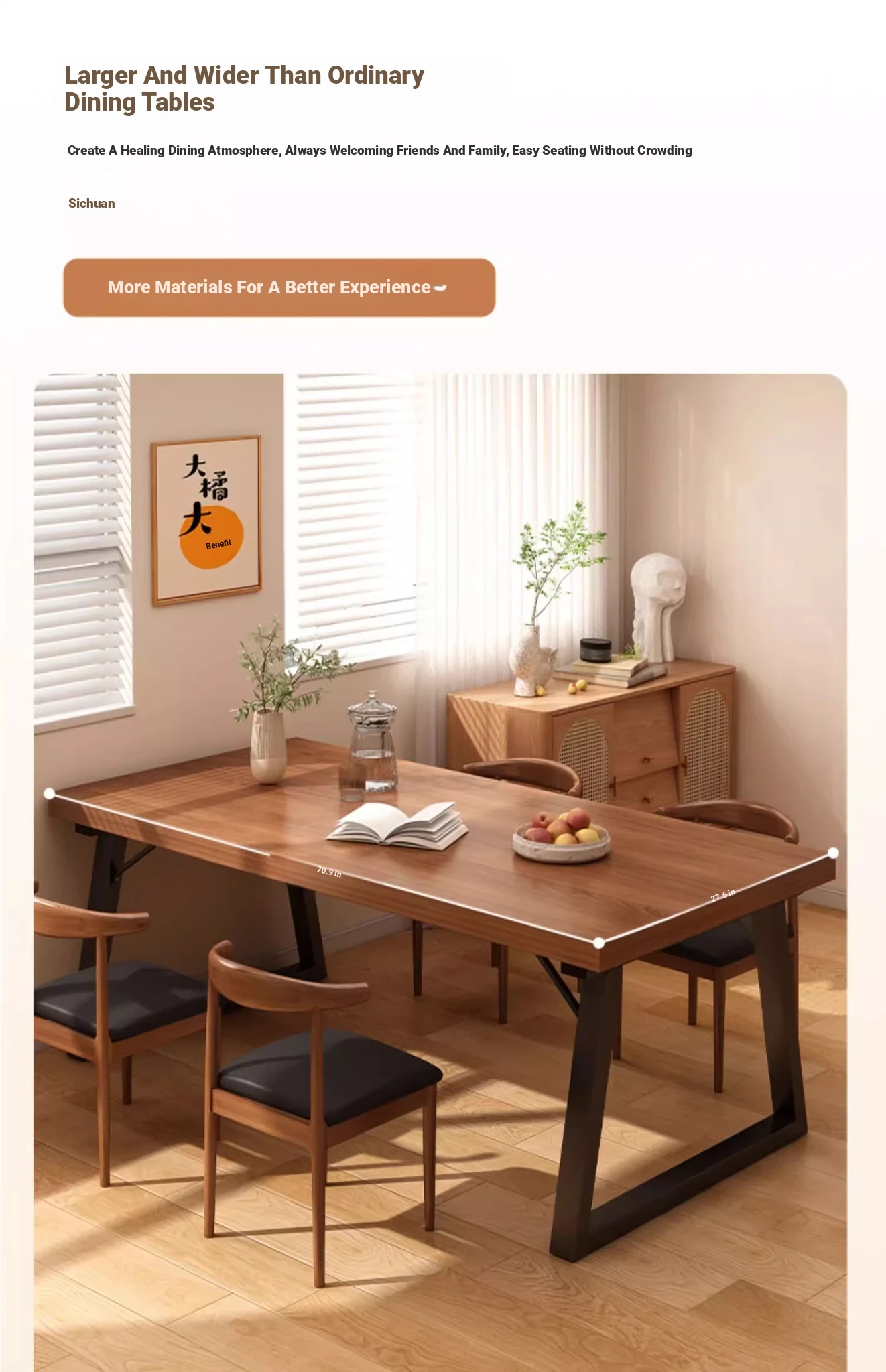 [One table and six chairs★Solid wood chair: 70.87in*27.56in*29.53in | Walnut color