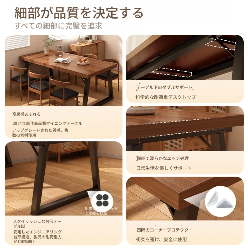 家庭用小型長方形ダイニングテーブル|4脚椅子付き|リビングにもぴったり!おしゃれで機能的な大判テーブルで、快適な食事タイムを実現!