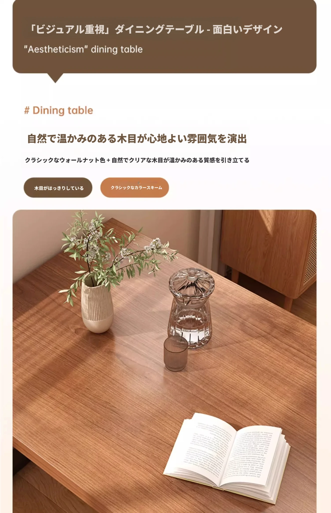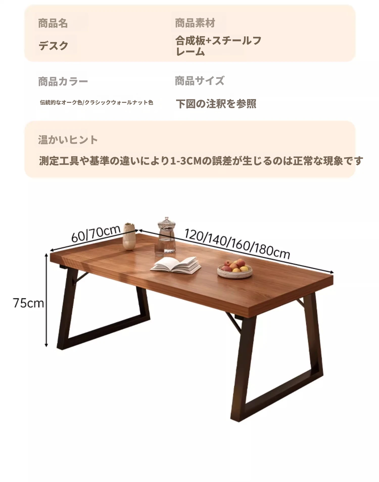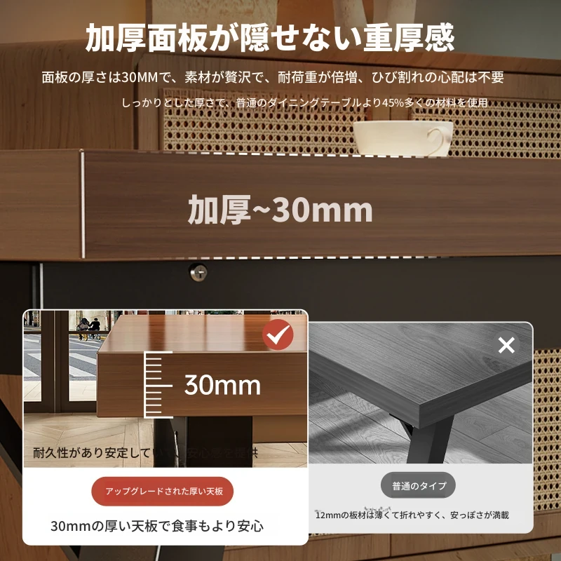 【メイン画像単卓タイプ⭐30MM厚テーブル】140*60*75CM|ウォールナット色