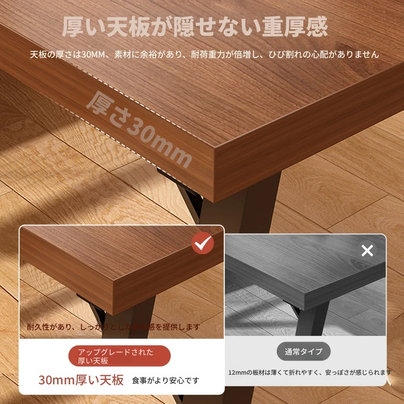 【メイン画像単卓タイプ⭐30MM厚テーブル】120*60*75CM|ウォールナット色