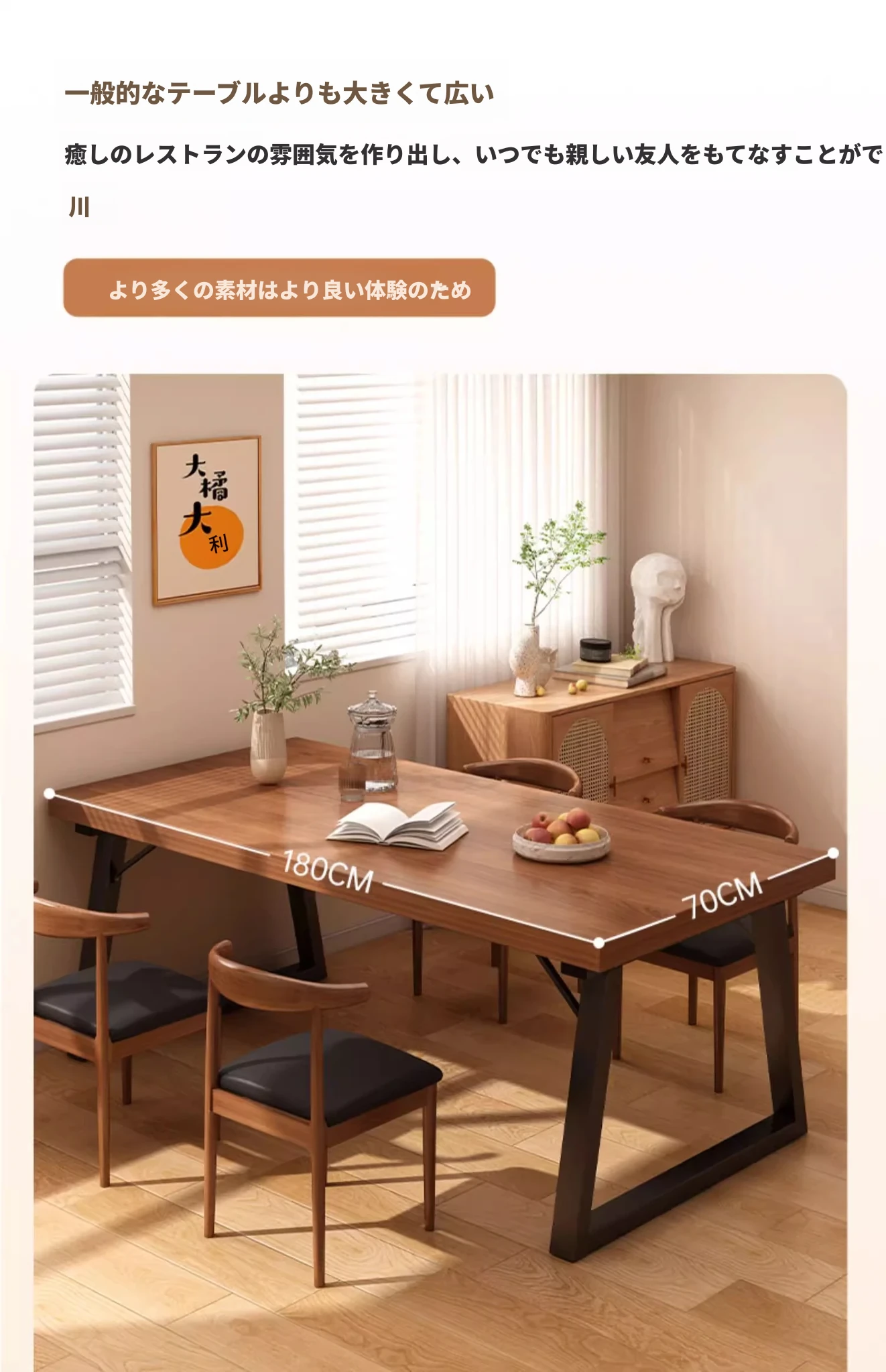 【メイン画像単卓タイプ⭐30MM厚テーブル】180*70*75CM|ウォールナット色